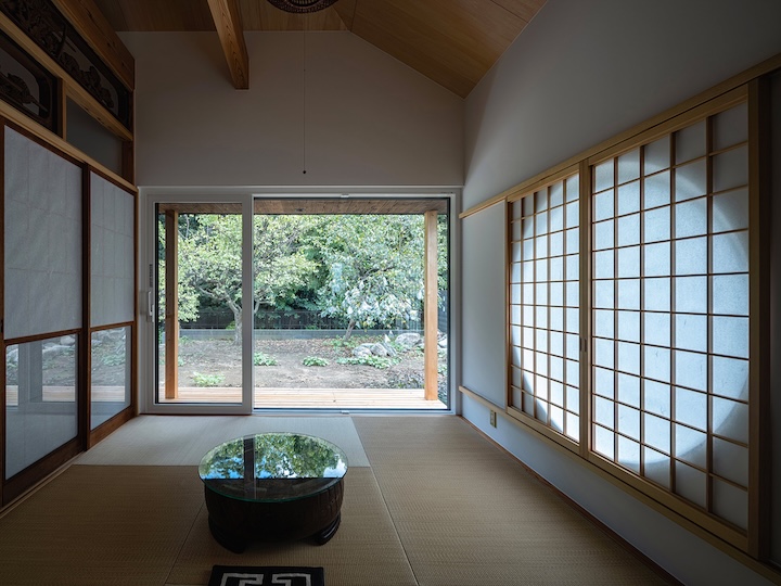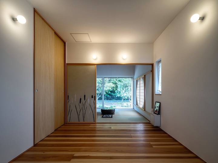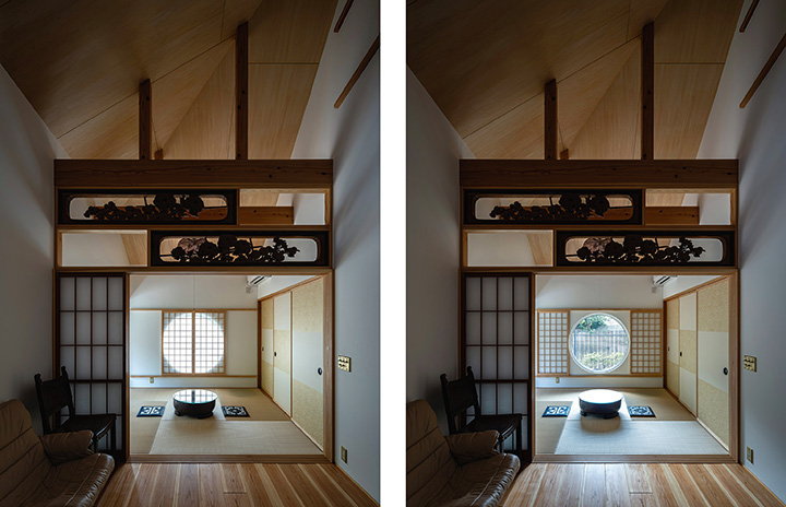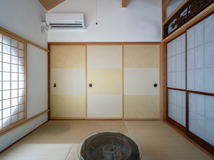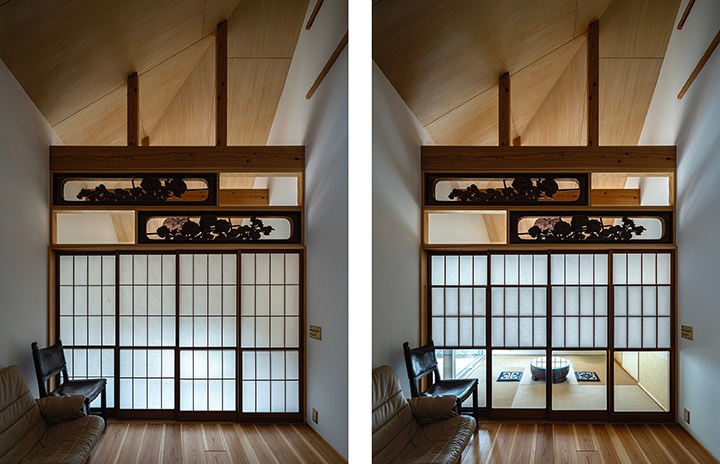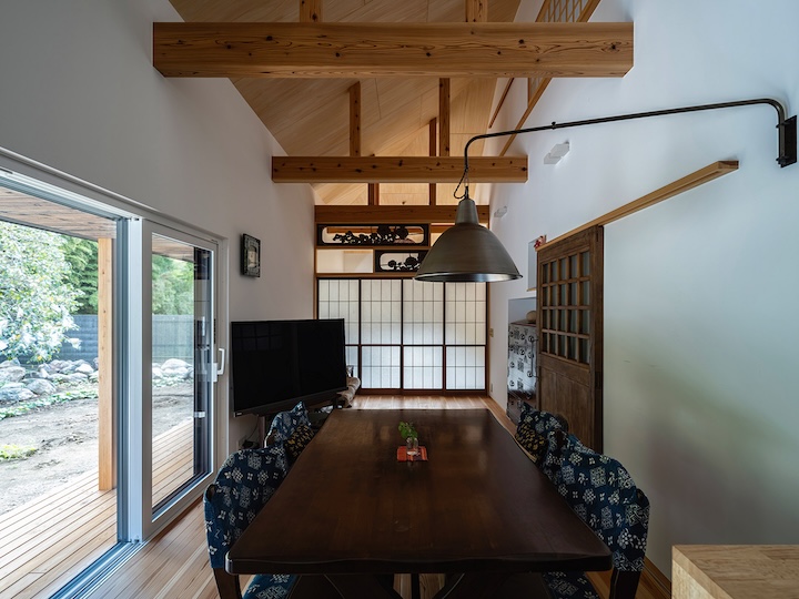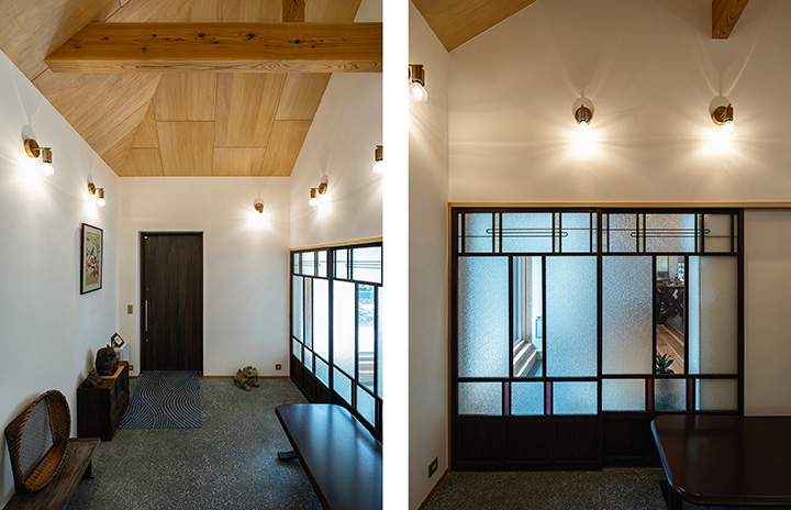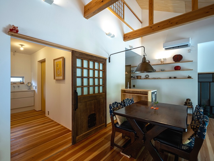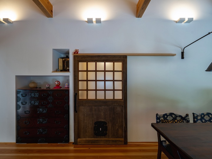 ところどころにあてはめられた古建具や透かし彫りが、新しい家に落ち着きをもたらしてくれる。