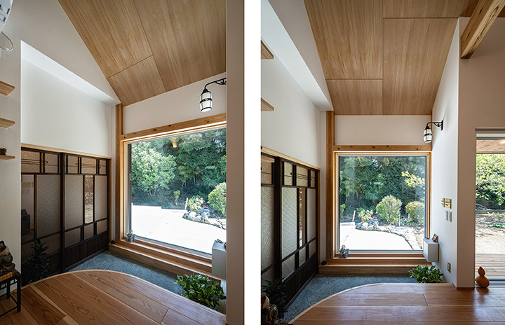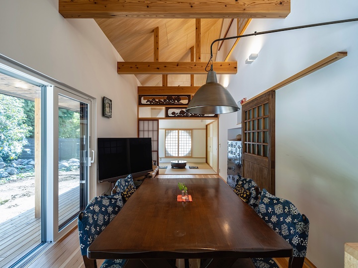 屋根の下の濡縁は、晴れている日も雨の日も外で佇む心地よさを教えてくれる。